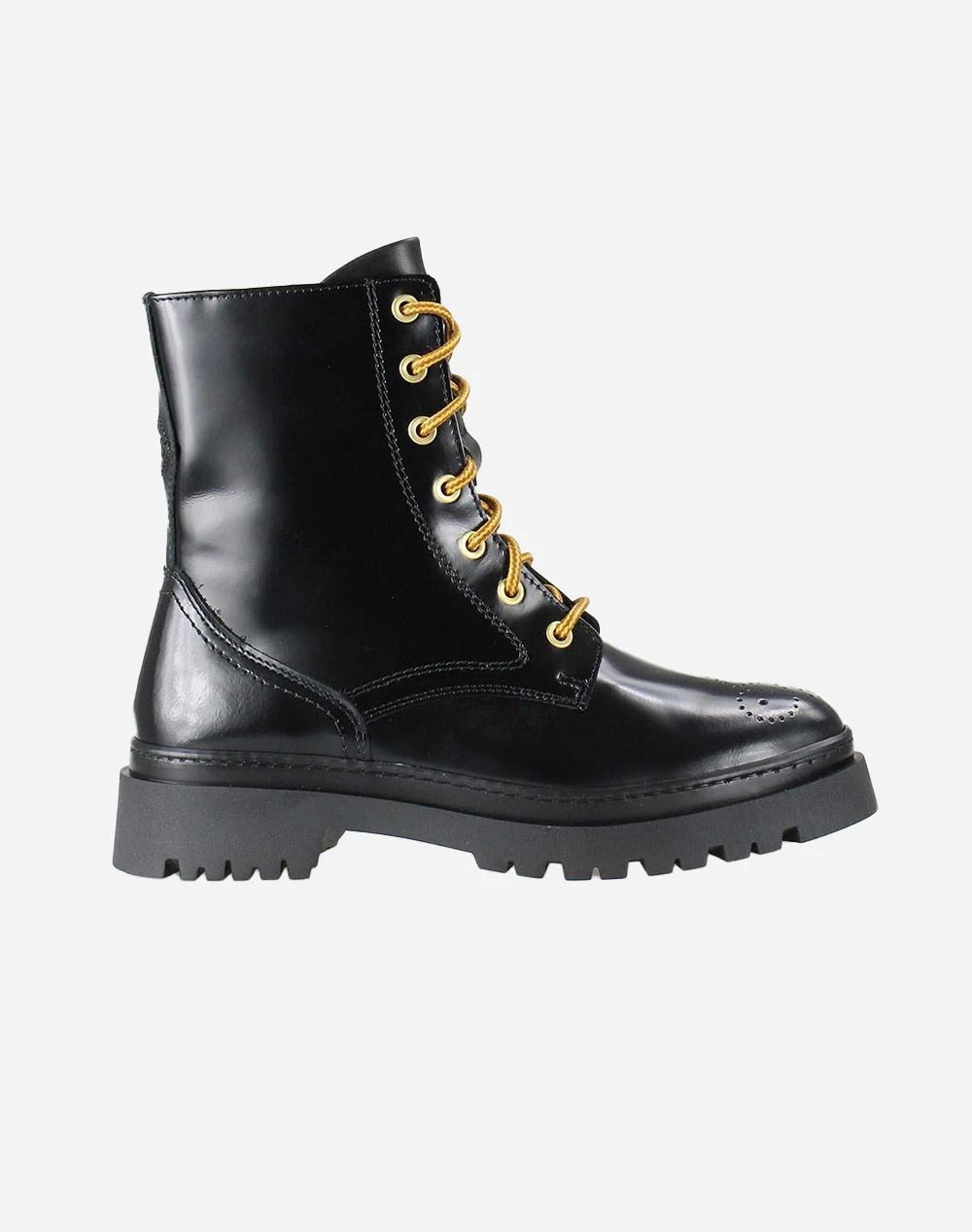 Γυναικεία μποτάκια μονόχρωμα με ανάγλυφο μονόγραμμα στο πίσω μέρος και σχέδιο από διάτρητες λεπτομέρειες στο πάνω μέρος. Διαθέτουν φερμουάρ και κορδόνια για έυκολη εφαρμογή. (Σύνθεση: Δέρμα)