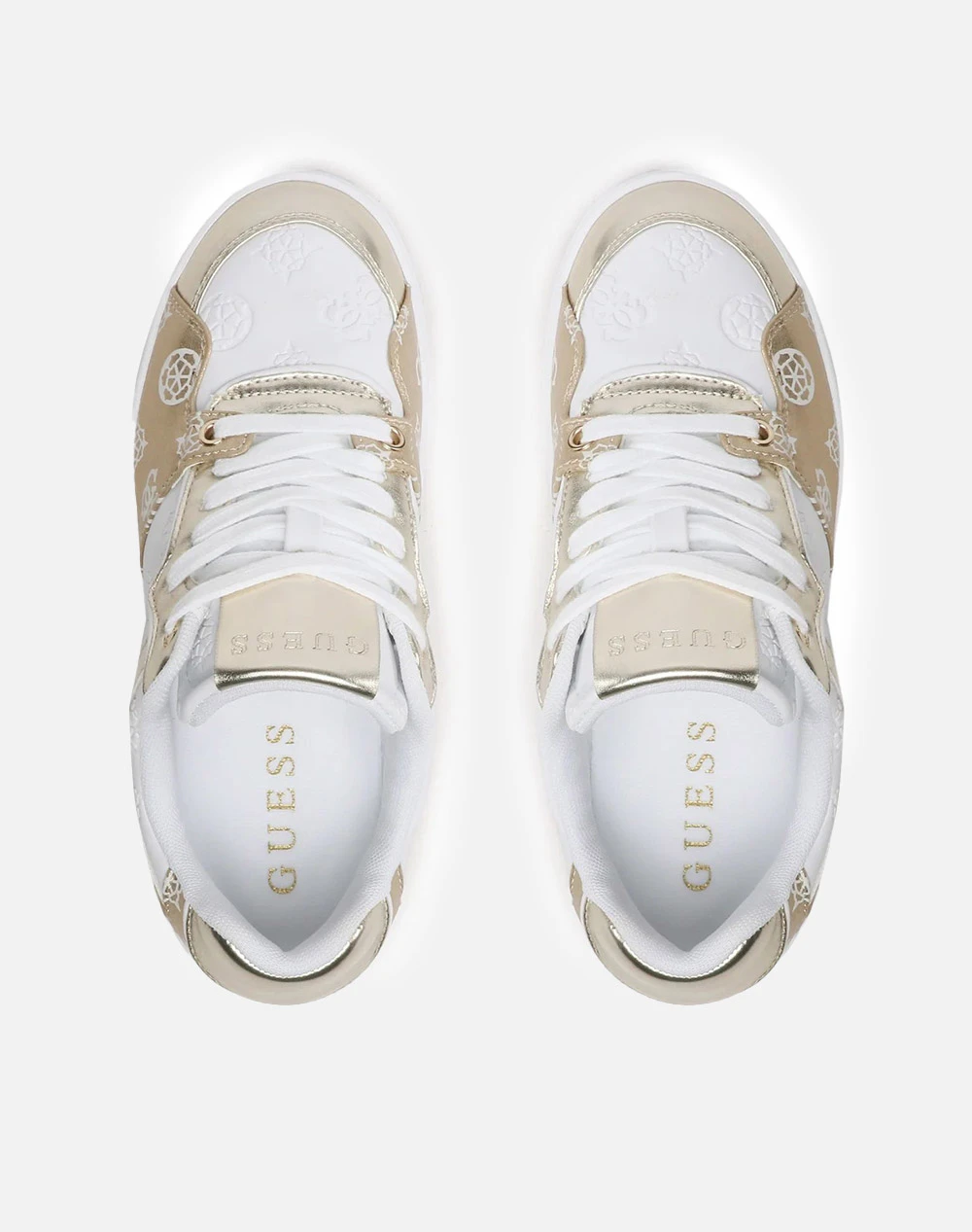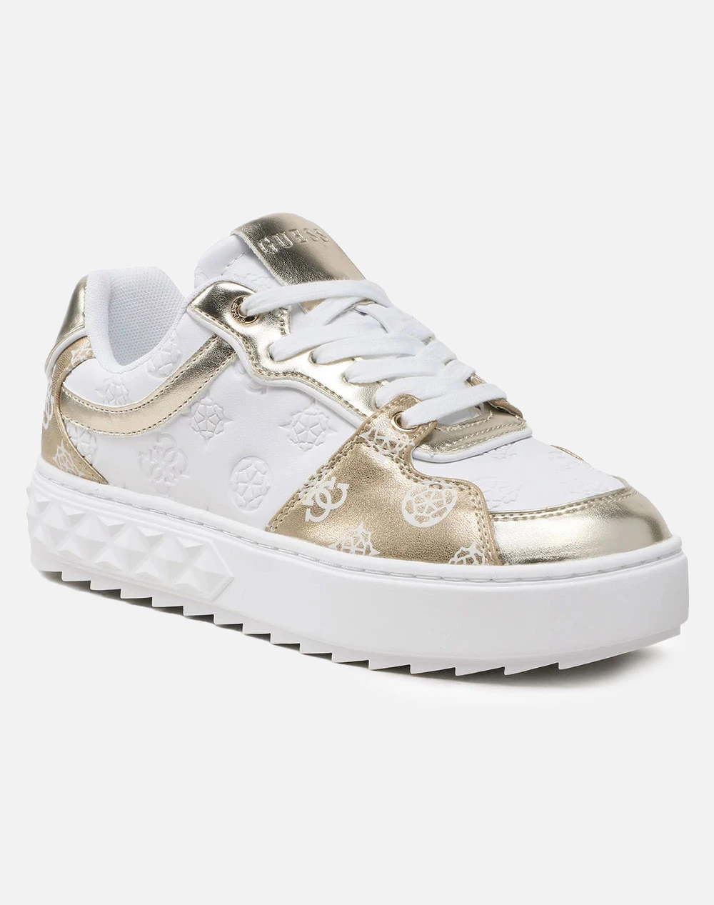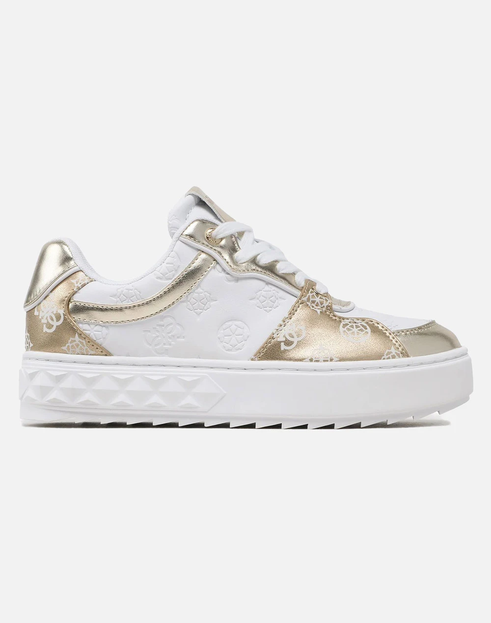 Γυναικεία παπούτσια sneakers από οικολογικό δέρμα, στάμπα 4G και λογότυπο peony, σόλα με χρυσή λεπτομέρεια και εφέ stud. στρογγυλή μύτη, άνετο εσωτερικό με ύψος τακουνιού 4 cm και δέσιμο με κορδόνια. ( Σύνθεση: Οικολογικό Δέρμα, Συνθετικό )
