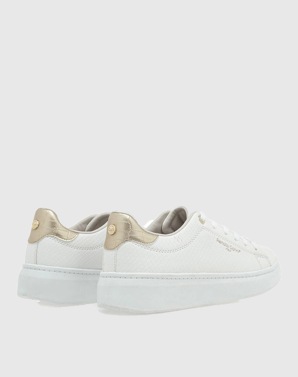 Γυναικεία Sneakers με κανονική εφαρμογή, μονόχρωμα με σχέδιο φίδι και πλατίνα κροκό στο πίσω μέρος. Διαθέτουν μαλακό πέλμα και αντιολισθητική πολύ ελαφριά σόλα. Μαλακό πατάκι memory foam και δέσιμο με κορδόνια. ( Σύνθεση: 100% Ανακυκλωμένο Υλικό )