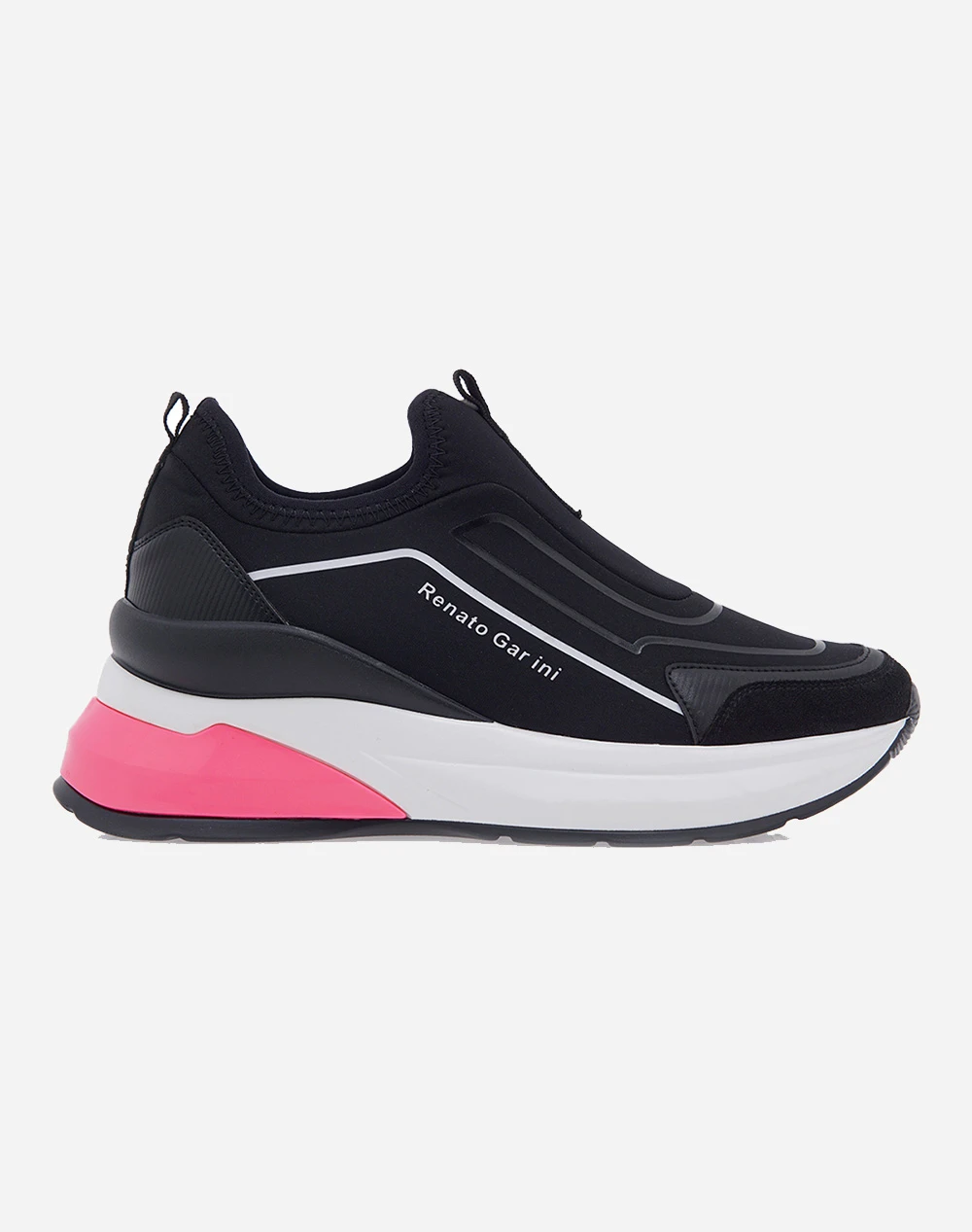 Γυναικεία Sneakers σε στυλ κάλτσα, από τη συλλογή της εταιρείας RENATO GARINI. Με ελαστικό ύφασμα για καλύτερη εφαρμογή και φούξια λεπτομέρεια στη φτέρνα και λογότυπο της εταιρείας στο πλάϊ. (Σύνθεση: Ύφασμα, Συνθετικό)